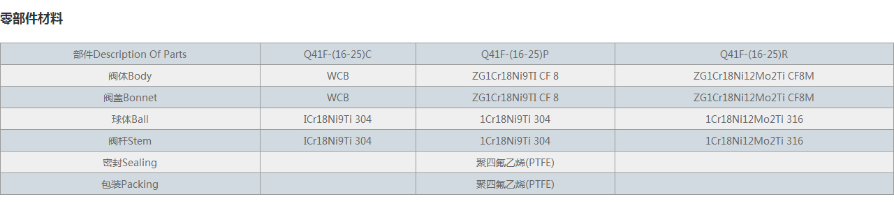| 部件Description Of Parts | Q41F-(16-25)C | Q41F-(16-25)P | Q41F-(16-25)R |